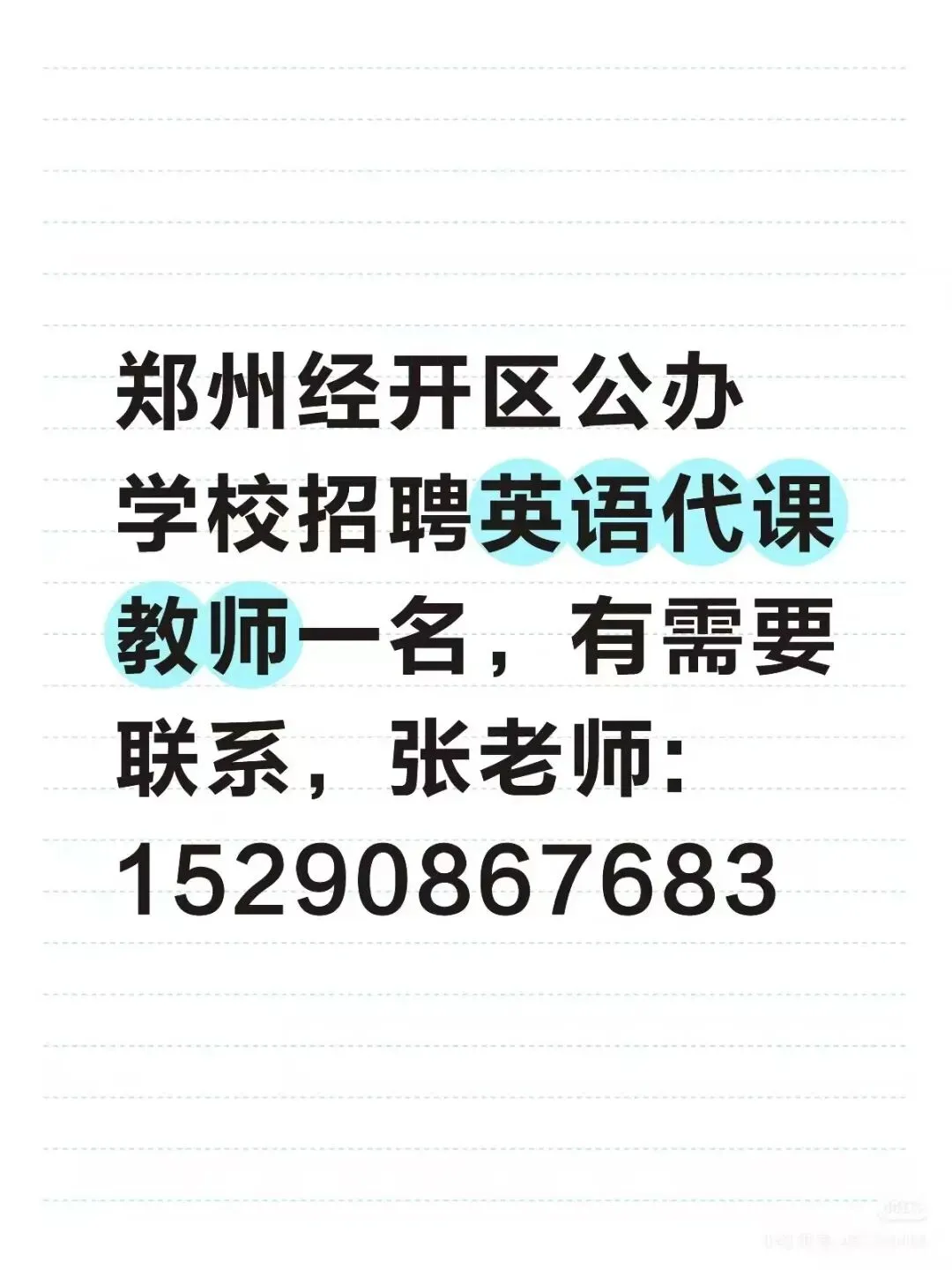 郑州市管城区某公办小学招聘英语代课教师: