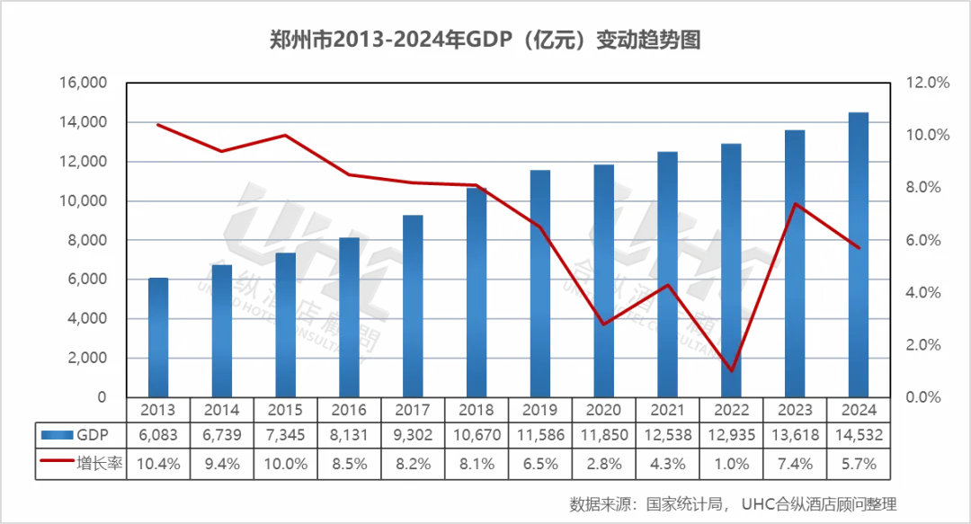 欢迎阅读"2024年度重点城市酒店经营数据观察 | 系列报告之郑州篇"。在这篇报告中,我们分析了郑州在2013至2024年期间GDP数据和旅游业数据的变化趋势,同时解读了该市在同一时期内酒店业的经营状况和发展趋势。我们期望,这些数据能助您深入了解郑州的酒店行业现状,并为您未来的决策提供数据支撑。
