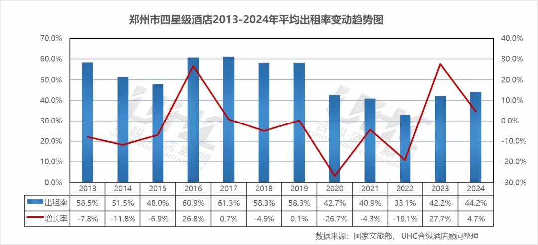注:本报告中涉及的郑州第四季度(2024年Q4)各星级酒店经营数据(包括平均房价、出租率及RevPAR)为基于UHC合纵酒店顾问公司长期跟踪的全国酒店经营数据库,并结合历史数据趋势、行业季节性特征及宏观经济与旅游业复苏态势进行的专业预测。
