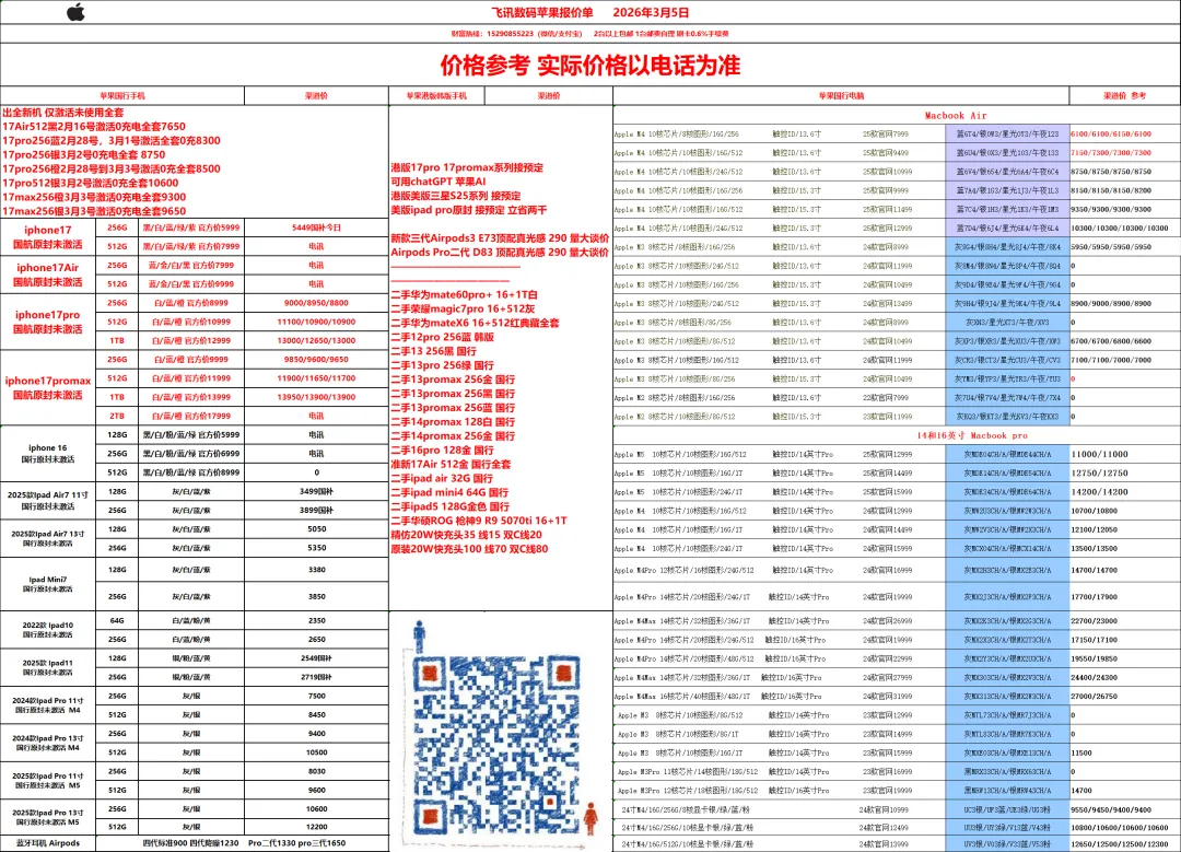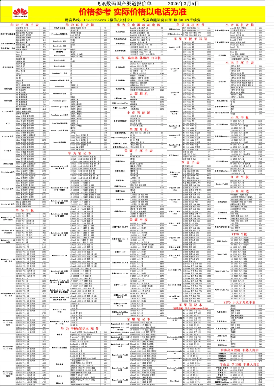 2026年3月5日渠道报价单 关注公众号查看每日报价