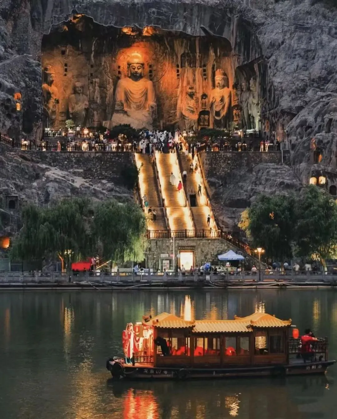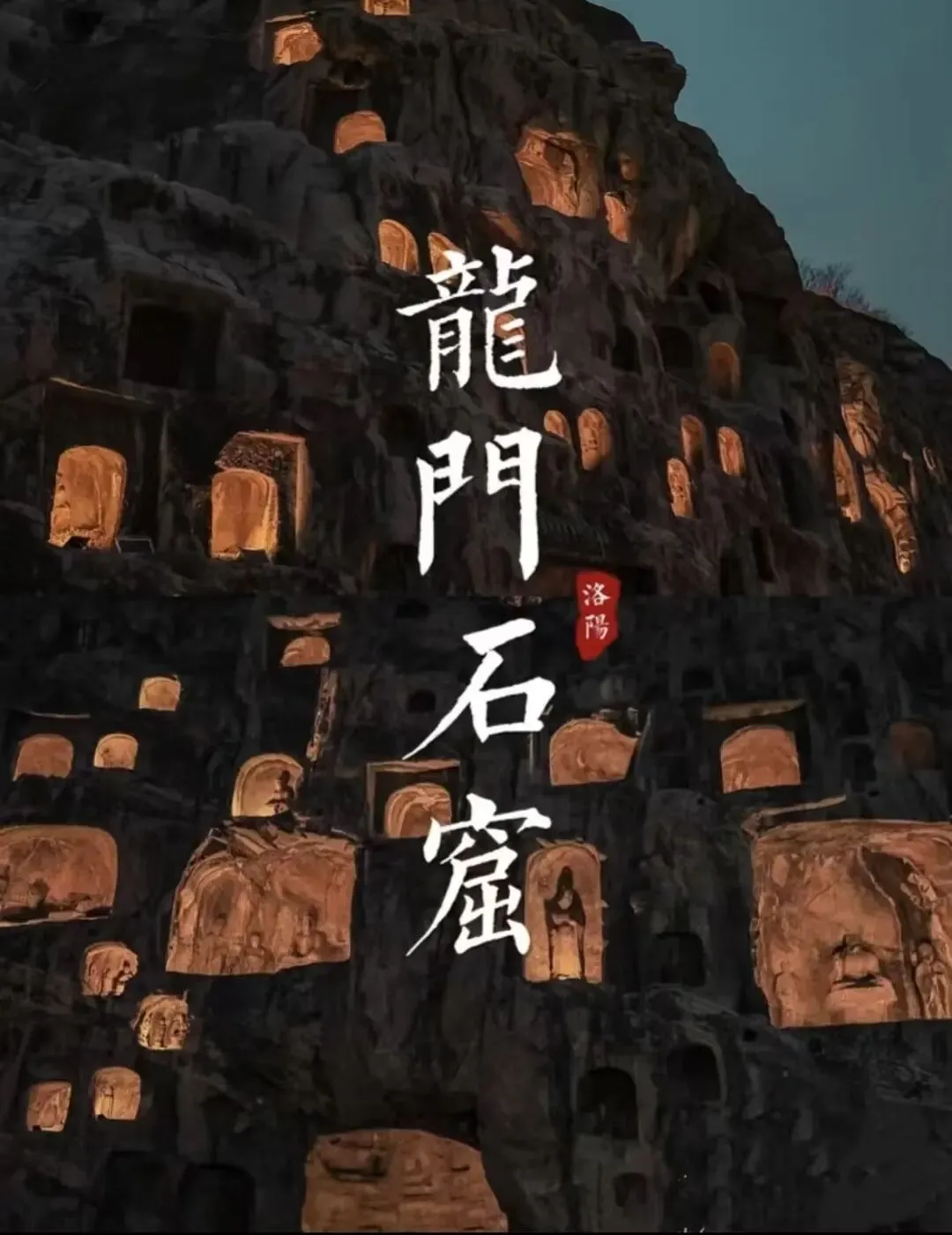 龙门石窟:在河南省洛阳市洛龙区龙门中街 13 号,伊河两岸的龙门山与香山对峙,古称 “伊阙”,远望像天然门阙。始建于北魏孝文帝迁都洛阳(493 年)前后,历经北魏、唐等多个朝代,连续营造 400 余年;是世界文化遗产、国家 5A 级景区,2000 年列入世界遗产名录,被称作中国石刻艺术的最高峰。现存窟龛 2345 个、造像 10 万余尊、碑刻题记 2800 余品,南北绵延约 1 公里。