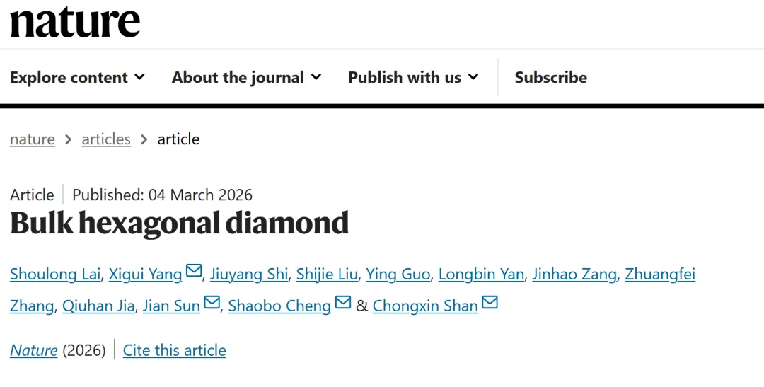 被誉为“终极半导体ultimate semiconductor”的立方金刚石(cubic diamond, CD),因其卓越的物理与电子性质,在科学研究与工业应用领域长期受到广泛关注。多形体——六方金刚石(hexagonal diamond, HD)——则更加引人注目,因为常与陨石撞击等极端条件下形成的特殊结构相关。然而,由于缺少确凿而直接的实验实证,六方金刚石HD 的真实存在及其物理性质长期处于争议之中,材料特性也因此始终未能得到系统研究。