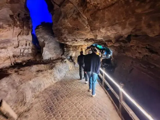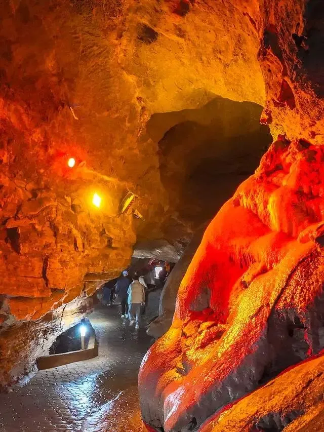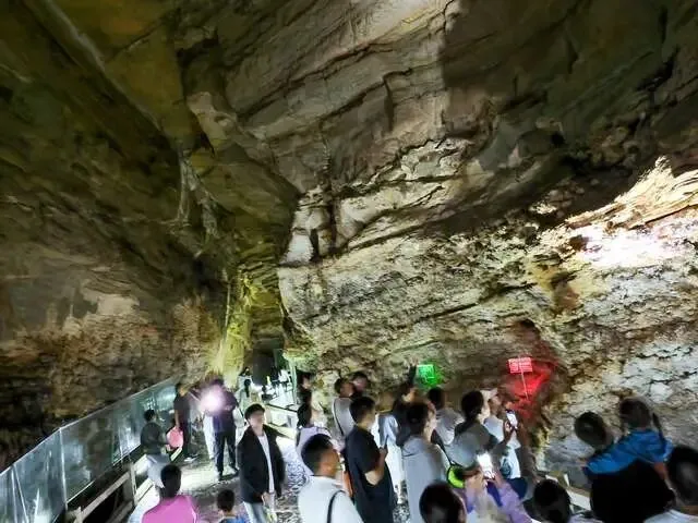 春天山色正好,进洞后光影幽暗,反差感极强。比单纯看钟乳石更有故事感。