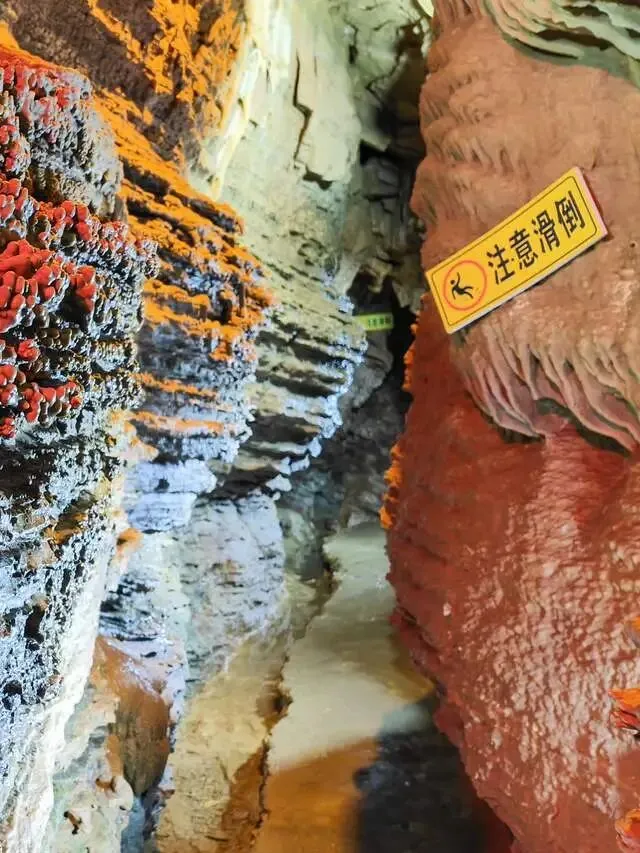 173米雪花长廊,洞壁布满晶体方解石,像冻结的银河。常年15℃,但春天来反而更舒服——外面爬完山,进洞瞬间降温。