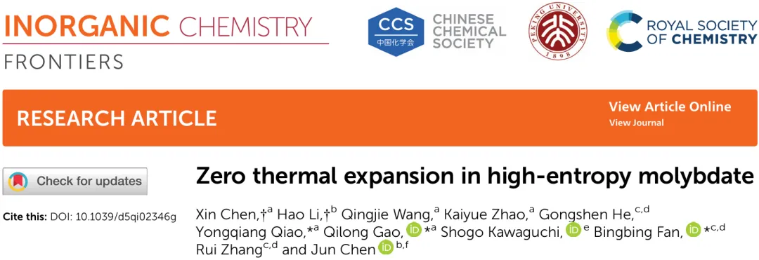 近日,郑州大学高其龙负热膨胀团队将高熵设计策略引入 NZP 型钼酸盐体系,成功合成了高熵氧化物 KMnSc₀.₂₅In₀.₂₅Lu₀.₂₅Yb₀.₂₅(MoO₄)₃,并系统研究了其晶体结构、热膨胀行为及相关物性。