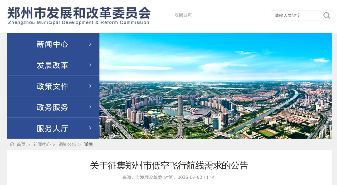 为做好低空公共航路划设工作,推进我市低空经济高质量发展,现公开征集郑州市低空飞行航线需求,有关事项公告如下: