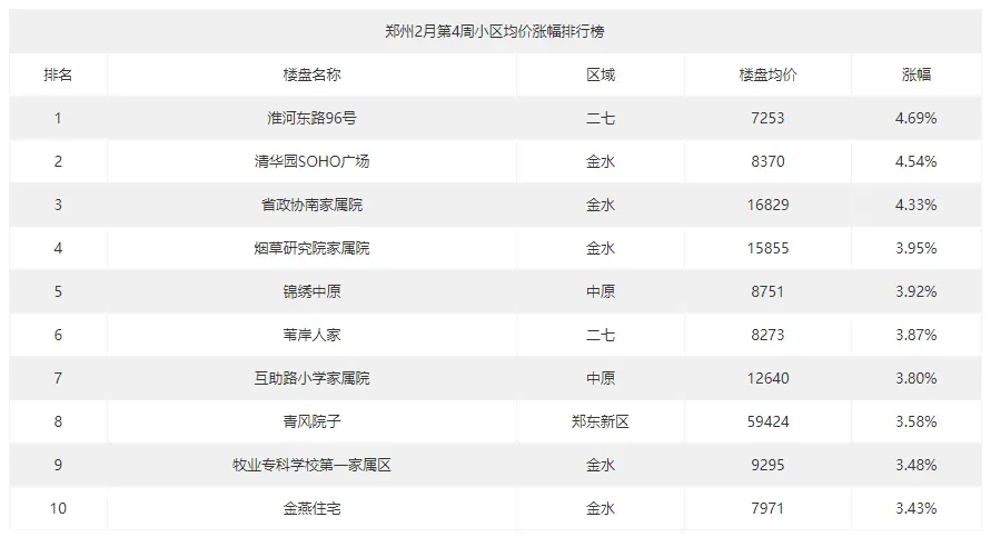 郑州本周小区均价涨幅排行榜出炉,快来看看你关注的房子上榜了么?