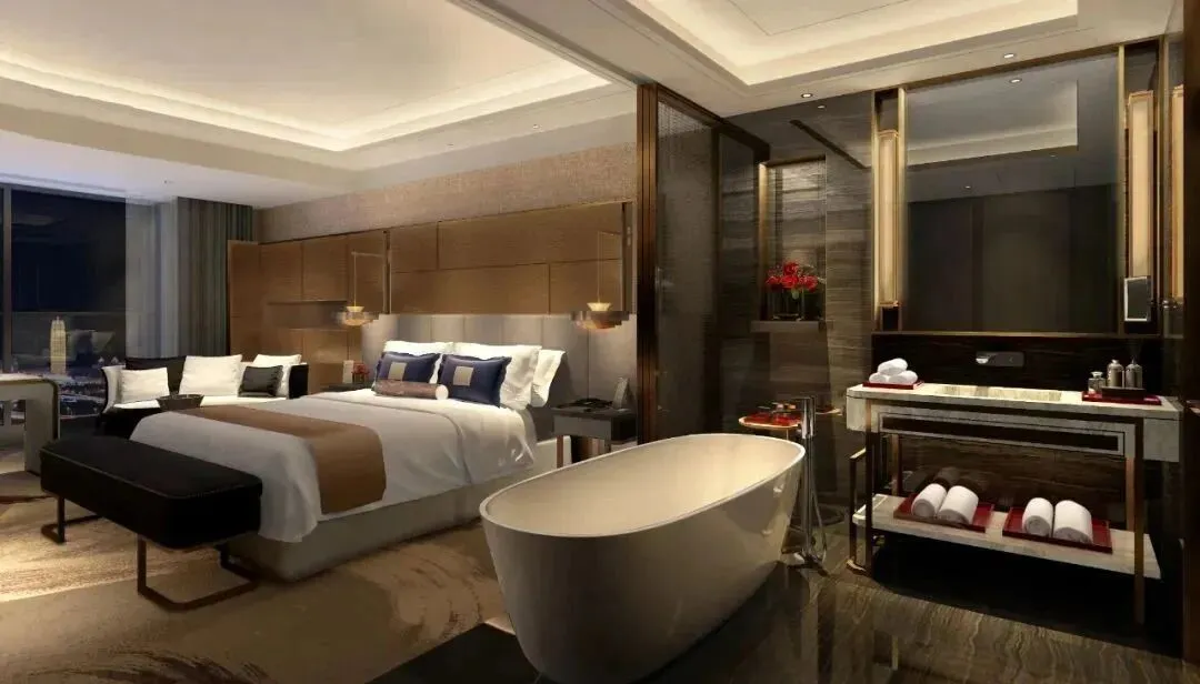酒店拥有387间客房,巧妙融合了东西方美学精髓,让您在私享的静谧空间中,尽览城市天际线的壮丽景致。