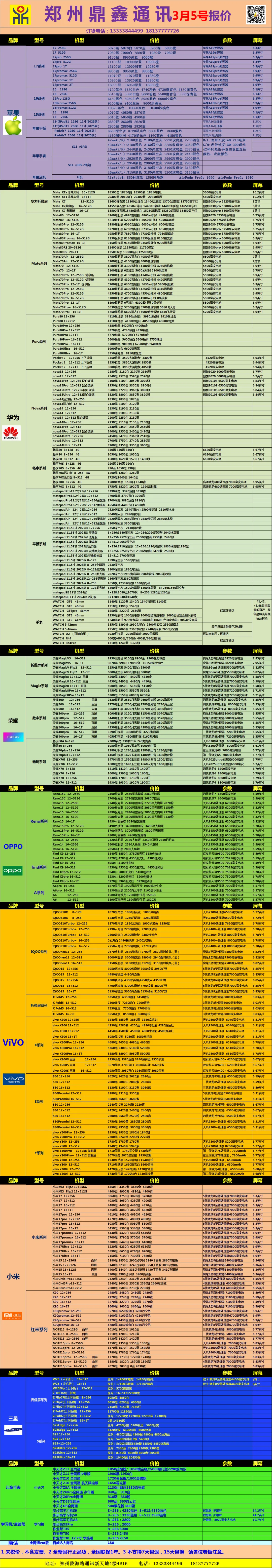 当前位置:首页>郑州>郑州鼎鑫通讯3月5号报价