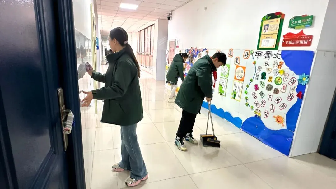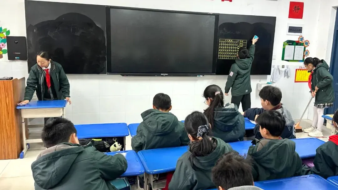 教室里,更是一派热闹又有序的暖心景象。孩子们化身班级小主人,积极投入到开学准备中:有的拿起粉笔,认真书写新学期寄语;有的细心整理阅读角,将一本本图书摆放整齐;有的安静阅读,在书香中开启新学期的美好;还有的主动打扫卫生、擦拭桌椅,用自己的双手装扮温馨的学习家园。大家分工合作、互帮互助,一张张纯真的笑脸、一个个忙碌的身影,构成了校园里最动人的暖心瞬间。