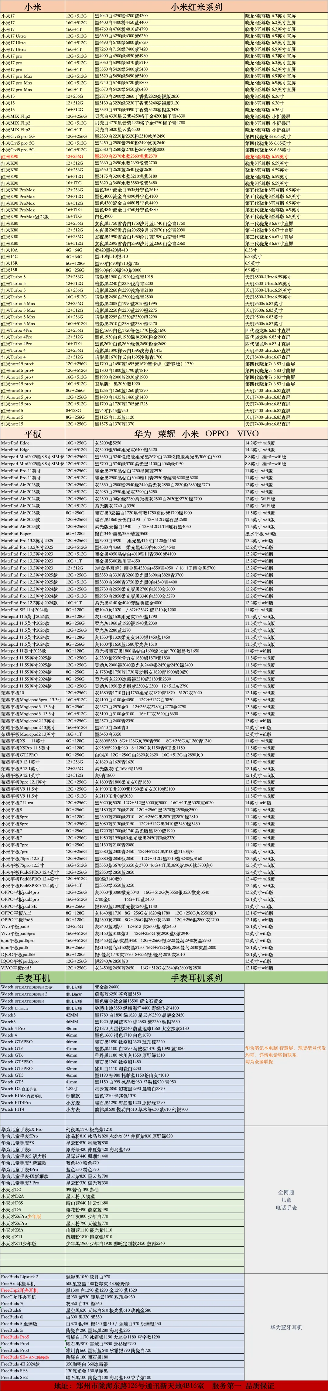 >郑州睿星通讯03月05号报价