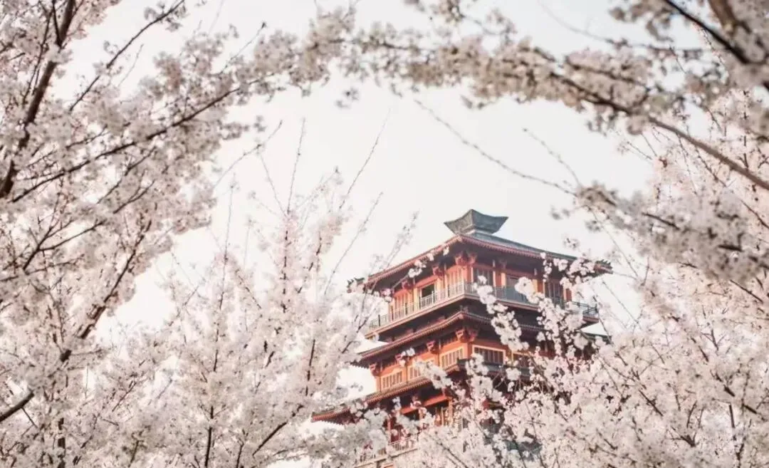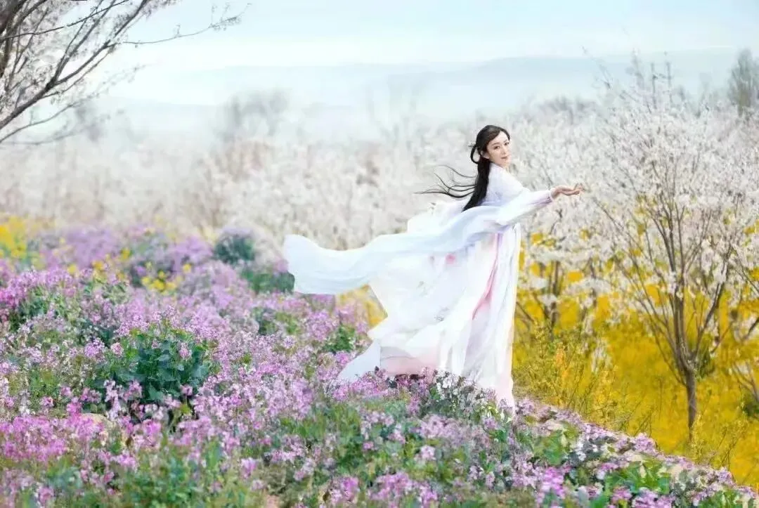 浪漫樱花海间,身着古装的佳人缓步走过,衣袂飘飘,裙摆轻扬,与满树繁花相映成趣,仿佛穿越千年时光,只为赴这一场春日之约。