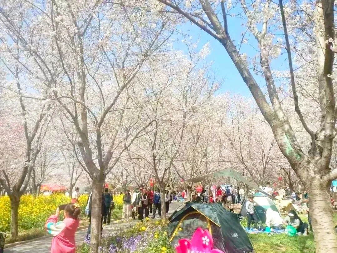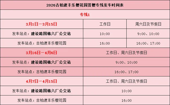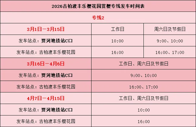 本次共开通两条赏樱专线,分别从贾河地铁站、国棉六厂公交站出发,招手即停。
