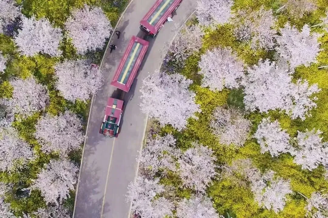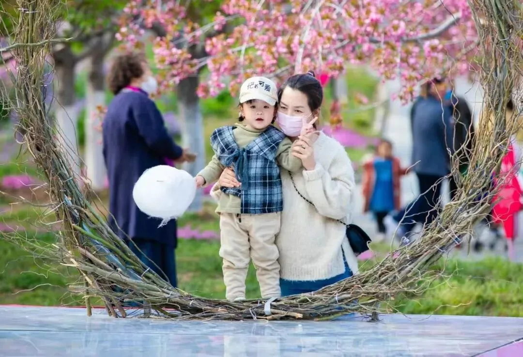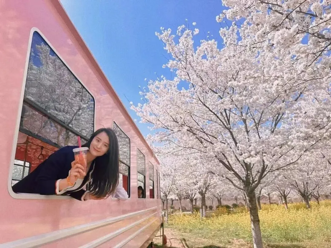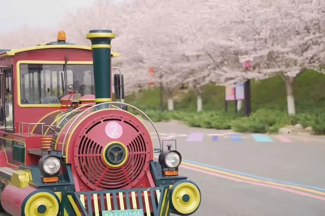 乘着浪漫的小火车,穿梭在樱花林中,嘟嘟的汽笛声似童话里跃动的音符,载着一家人的欢声笑语,驶向春天的深处!