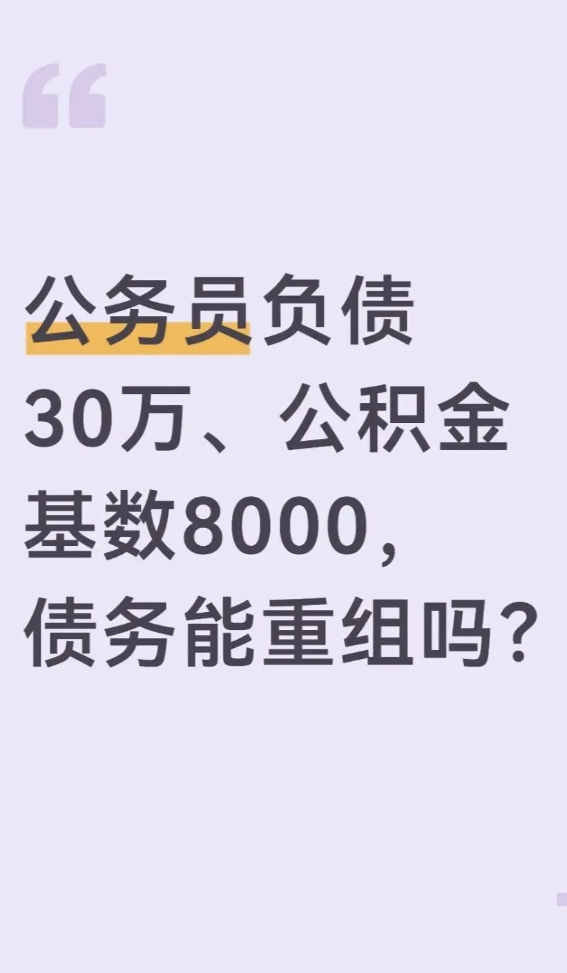 有体制内朋友咨询,公积金基数8000,背负30万负债,想做债务重组,也想找更省心的上岸办法。作为郑州贷款行业资深从业者,明确告诉大家:这类情况完全无需走重组弯路,公务员等体制内人群有专属低息上岸通道,30万负债结合8000的公积金基数,负债比例可控,找对方法就能轻松摆脱以贷养贷。