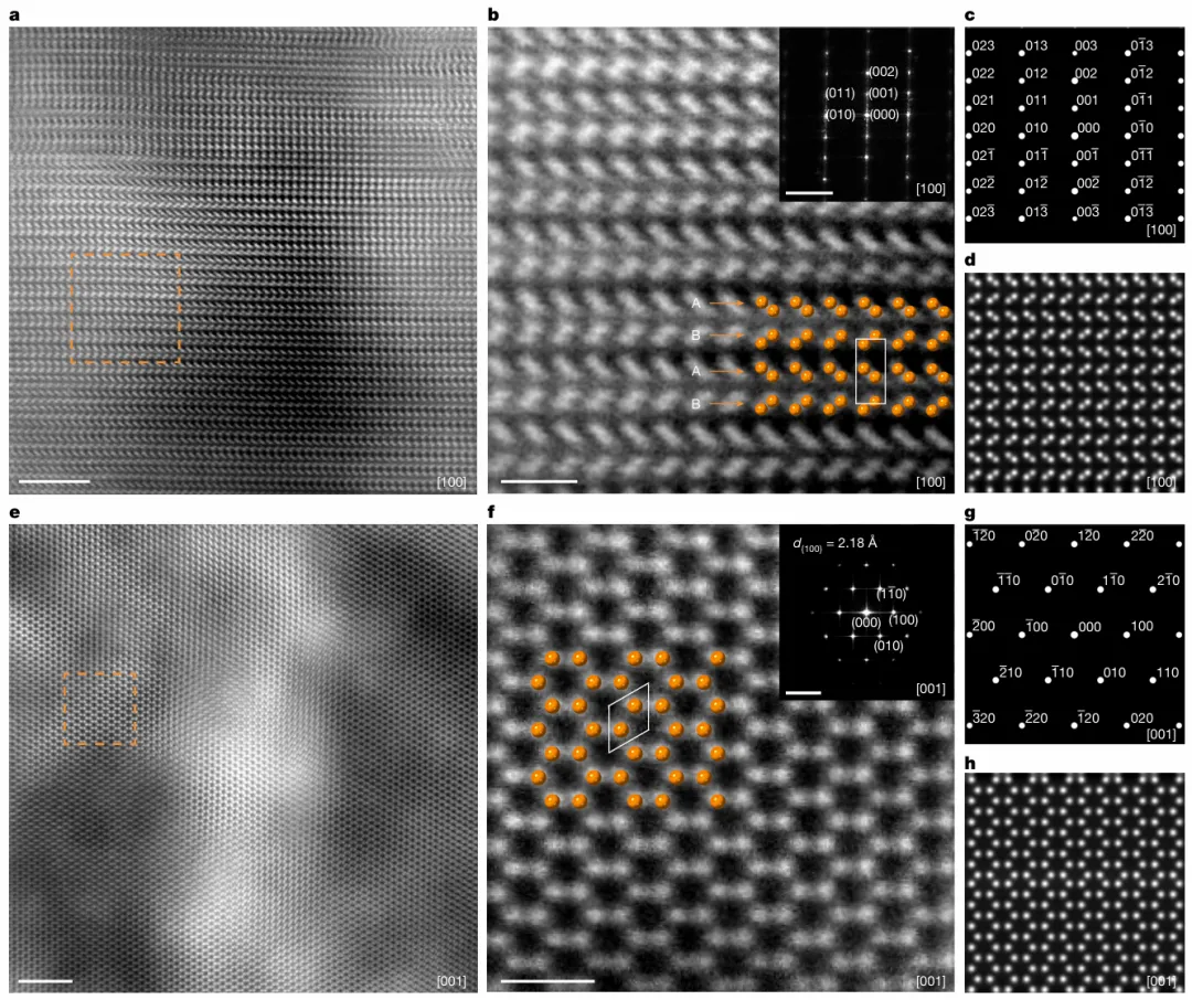 研究团队用球差校正扫描透射电镜(ADF-STEM)直接观察了材料内部。结果令人震撼: