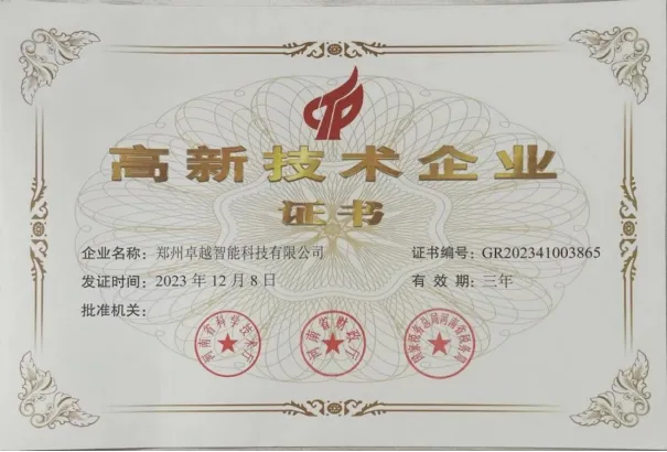 公司积极与郑州大学、河南工业大学等名校进行深度合作,通过不断创新,取得了多项专利证书和计算机软件著作权登记证书,通过了高新技术企业认定。