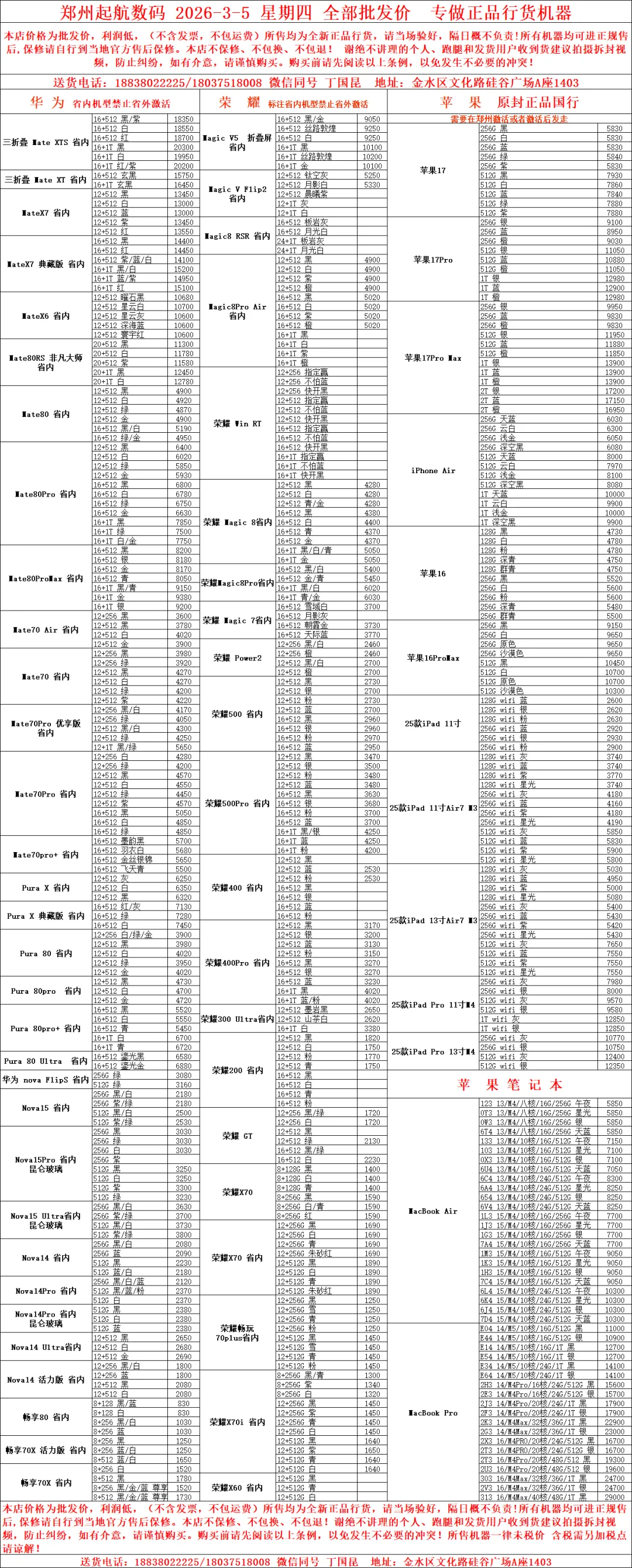 当前位置:首页>郑州>郑州起航数码2026.3.5报价