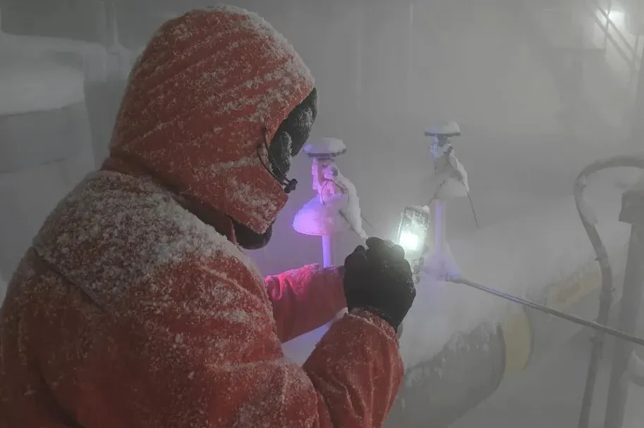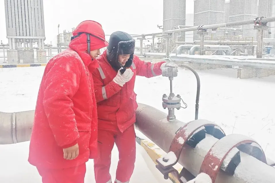 今年1月底,郑州遭遇强降雪天气,最低气温降至零下12摄氏度,郑州天然气高压外输区全体干部职工全力以赴开展极寒天气保供调峰工作。此轮强降雪天气既是对设备运行的考验,也是对班组专业素养和履职能力的全面检验。操作人员克服严寒影响,严格按照规程进行设备巡检和参数监控,每转动半圈阀门均需核对远传压力表数据,确保输气流量和压力稳定在安全区间。为保障仪表正常运行,工作人员坚持每小时进行冻堵排查,持续在雪地中开展巡检作业,确保生产运行安全平稳。