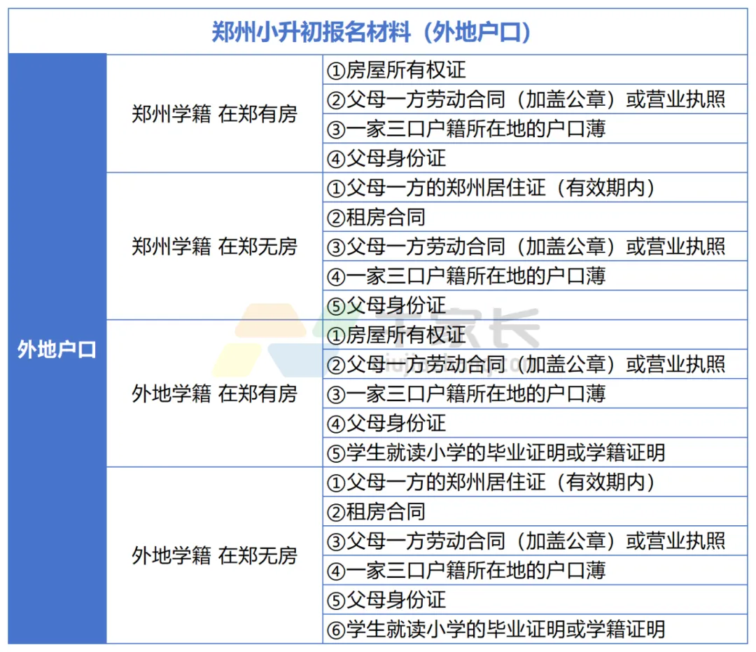 情况二:孩子在外地读小学,想来郑州上初中(外地学籍)