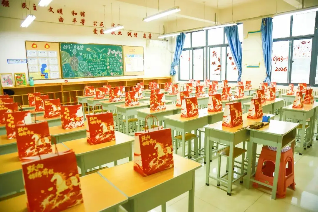 春风暖校园,新程启华章!2026年3月5日清晨,郑州高新区荣邦城小学校门口嫩绿色春日布置氛围感拉满,校领导早早来到校门口,为重返校园的学子送上暖心祝福红包。孩子们带着笑脸和自己的创意作品,入校时满是喜悦与温情。教室里是老师为孩子们准备的开学惊喜,校园处处洋溢着新学期的朝气与活力。