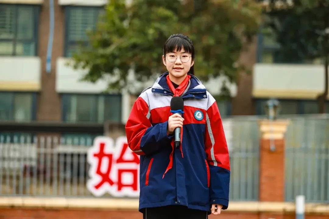 优秀学生代表张羽琪演讲优秀学生代表张羽琪登台发言,分享自己的“郑小史”港澳之行。张羽琪同学在经历了学校、高新区和郑州市的五轮比赛,在持续三个多月的层层选拔中脱颖而出,成功当选郑州市首批“郑小使”。寒假期间,张羽琪作为郑州市20名优秀中小学生代表之一,在郑州市委统战部和郑州市教育局的组织下,赴港澳开展交流活动。她用稚嫩又坚定的话语说:“‘健康第一’,身心健康,才能走向世界,展示中国少年的风采!”