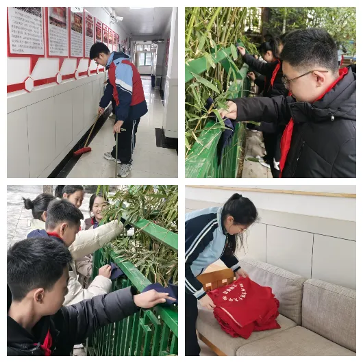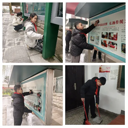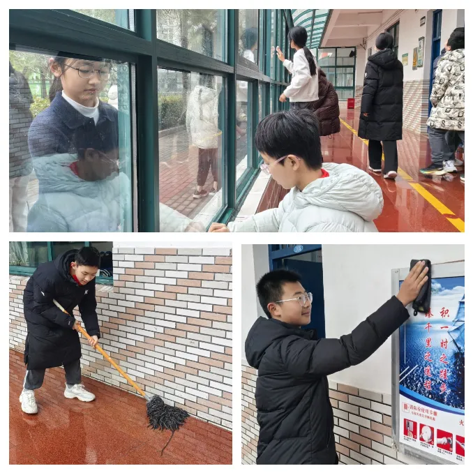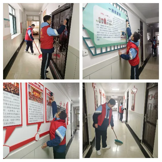 同学们分工协作、热情高涨,有序开展校园清洁志愿服务。大家手持扫帚、抹布等工具,认真清扫校园道路与公共区域卫生,细致打扫教室、广播室,用心擦拭校园展板,不放过任何卫生死角。同学们干劲十足、配合默契,忙碌的身影成为校园里一道温暖的风景线,经过共同努力,校园环境更加整洁有序,公共区域焕然一新。