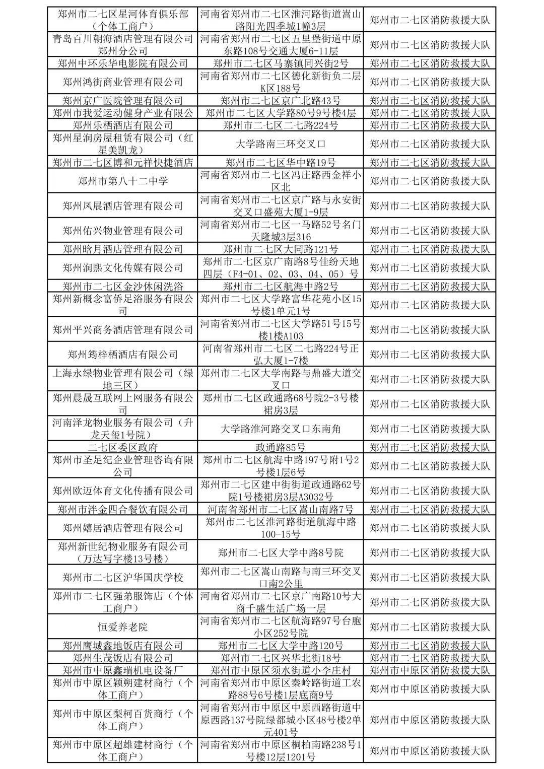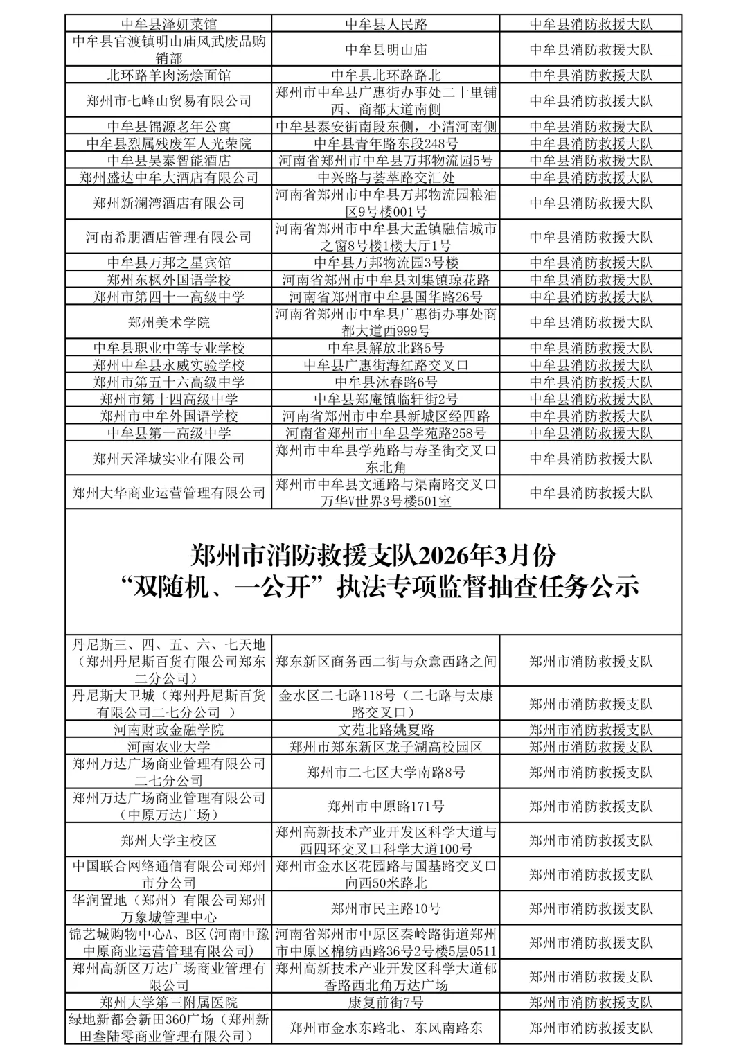郑州市消防救援支队2026年2月1日至28日“双随机、一公开”执法监督检查结果公示
