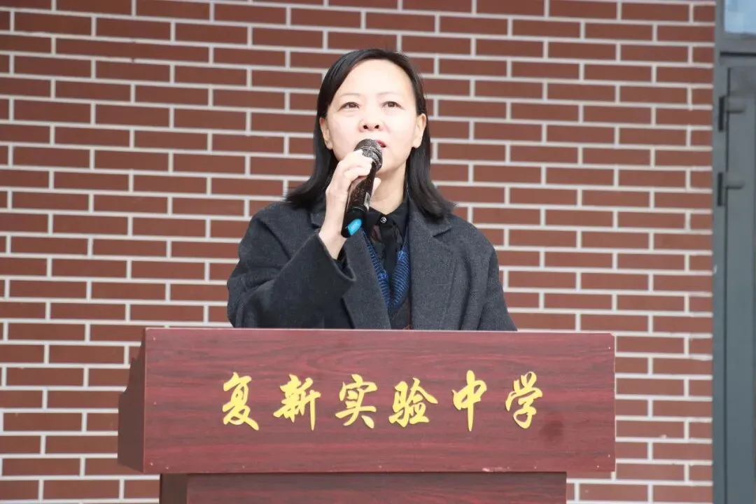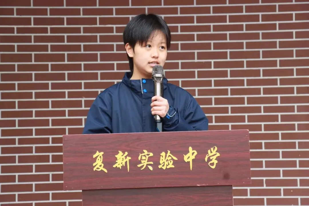 随后,优秀学生代表九八班孙雅轩同学登台发言。她分享了寒假的收获与感悟,畅谈新学期的目标与规划,代表全体同学立下成长誓言:新学期将树立明确目标,做到勤学善思、笃行实干,以昂扬姿态迎接每一次挑战,以踏实行动追逐心中梦想,不负春光、不负韶华,努力成为更优秀的复新少年。