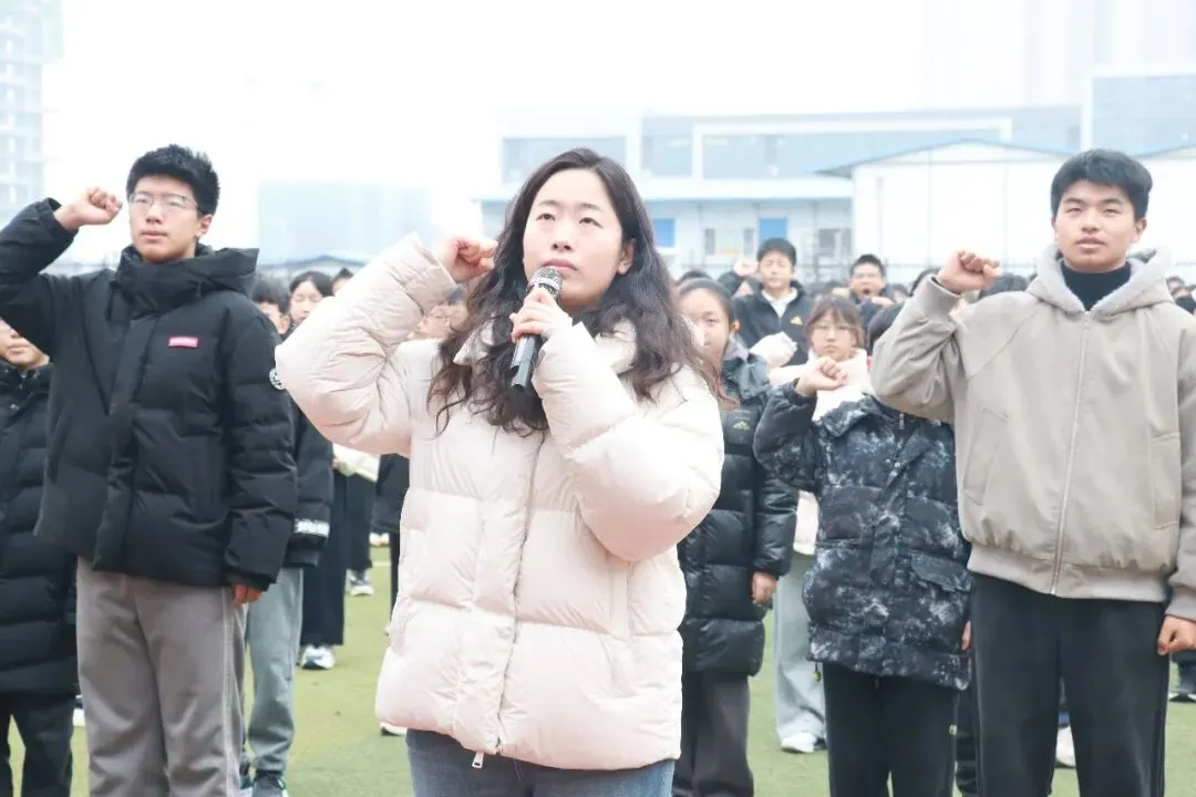 典礼最后,曹梦珑老师带领全体同学庄严宣誓,同学们高举右拳、声音铿锵,用誓言凝聚新学期奋进的力量,彰显复新同学们的坚定信念与昂扬风貌。