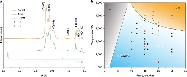 图1、石墨的XRD图谱和压力-温度相图 © 2026 Springer Nature