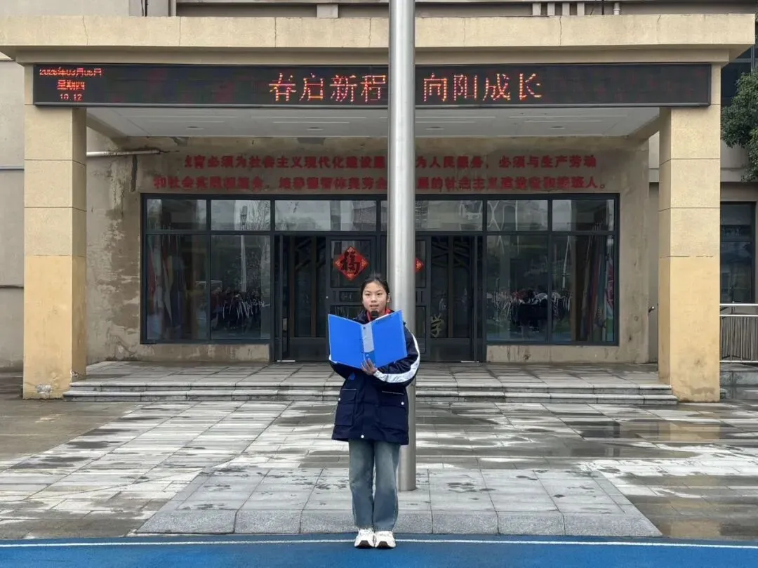 学生代表王韵之进行发言:新学期开启,我们重返校园,要在学习上勤奋认真、刻苦钻研;在习惯上自律自强、遵守纪律;在生活中尊敬师长、团结友爱。作为新时代的小学生,我们更要懂得责任与担当,珍惜时光,不负老师和父母的期望。让我们迎着春风、向阳生长,努力学习、快乐成长,在新学期遇见更好的自己!