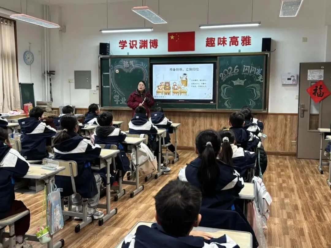 The first lesson in the spring of 2026 is based on the theme of "new semester, full horsepower", accompanying students to unlock new growth postures. Play horse puzzles, talk about robot technology in the Spring Festival Evening, share interesting things in winter vacation, and read dragon horse essence.The connotation of God's endeavor: put away biological clock regulation, ease emotions, scientifically quit electronic products, make good use of AI, not be lazy, and easily switch learning modes. Review all-round safety knowledge such as traffic, campus and diet, and build a safe line for growth; Make plans for the new semester, observe class rules, cultivate good habits, master high-efficiency learning methods, draw a map of the core competitiveness of the AI era, and polish the exclusive "root ability".