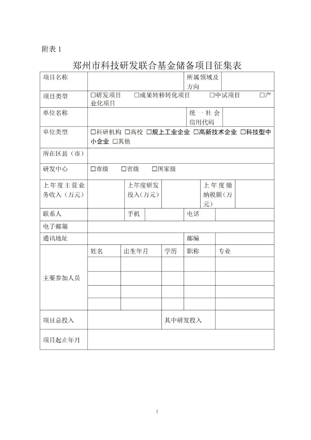 为推动关键核心技术研发与科技成果转化,做好河南省科技研发联合基金(产业类)申报工作,现征集科技储备项目,具体要求如下。包括但不限于以下领域:集成电路设计与制造、智能终端、智能传感器、先进计算、通信与网络、软件与信息安全、新一代人工智能、无人机、卫星导航、智能装备、智能网联汽车、量子科技、区块链、机器人等。1.产业研发转化项目,重点征集企业、科研机构实施的中试、成果转化示范项目。2.中试及科技成果转移转化项目,重点征集科研机构、企业实施的中试及科技成果转移转化项目。3.联合研发攻关项目,重点征集高校、科研机构、企业围绕产业“卡脖子”问题实施的基础和应用研究项目、重大协同研发合作项目。申报单位填写科技研发联合基金储备项目征集表(附表1)和项目汇总表(附表2),加盖公章后,于2026年3月16日将扫描件及电子版报送至所在开发区、区县(市)科技主管部门,开发区、区县(市)科技主管部门汇总后发送至市科技局规划处zzcxsfq2016@163.com邮箱。