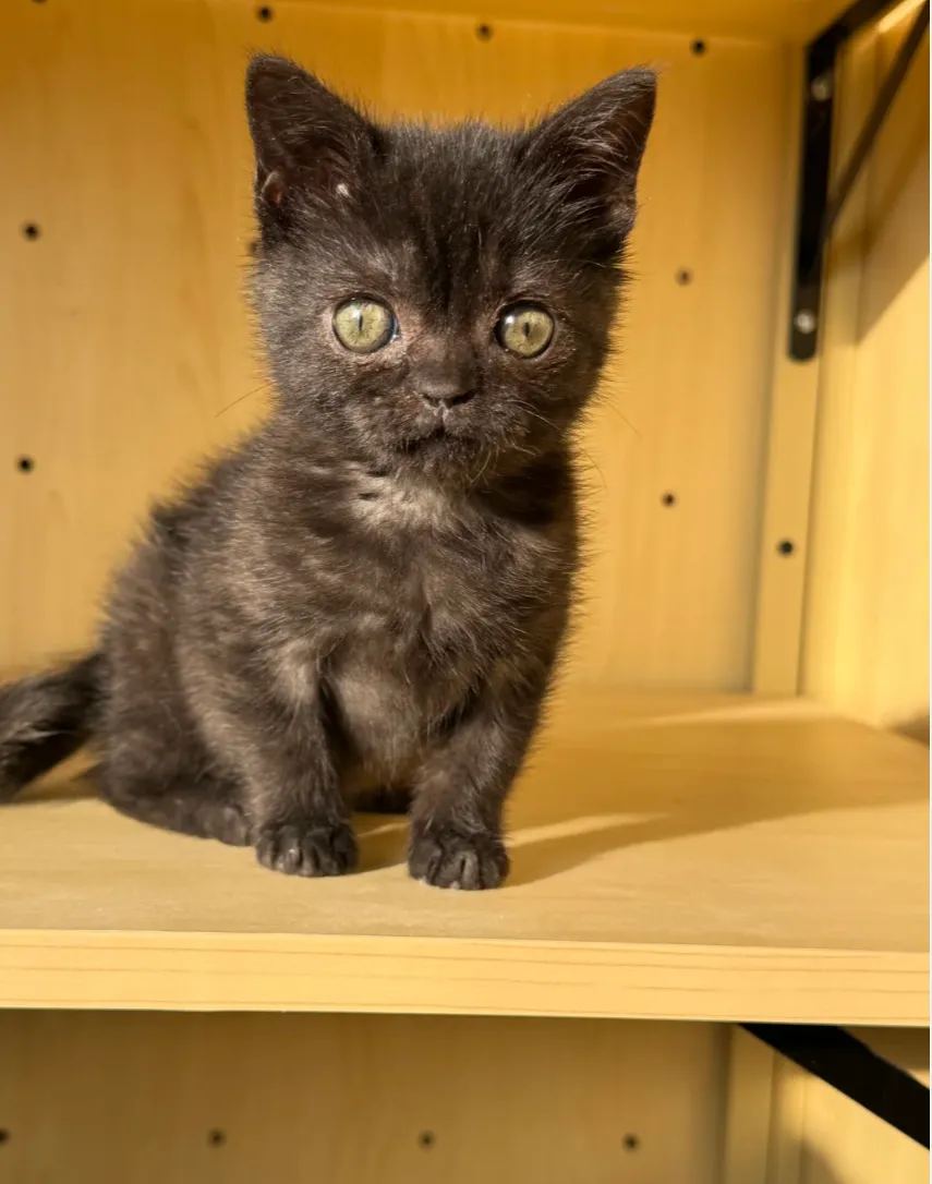 宠物信息:小黑刚开始来的时候,一个月大,像是没开智的样子,现在三个月大有点圆乎了,小包子脸,真好看,性格超级可爱,亲人,找个爱他的家!在郑州管城,小公猫!