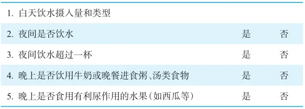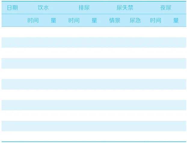 连续7个夜晚的夜间日记:记录尿床时间、次数、尿量、睡前饮水情况。