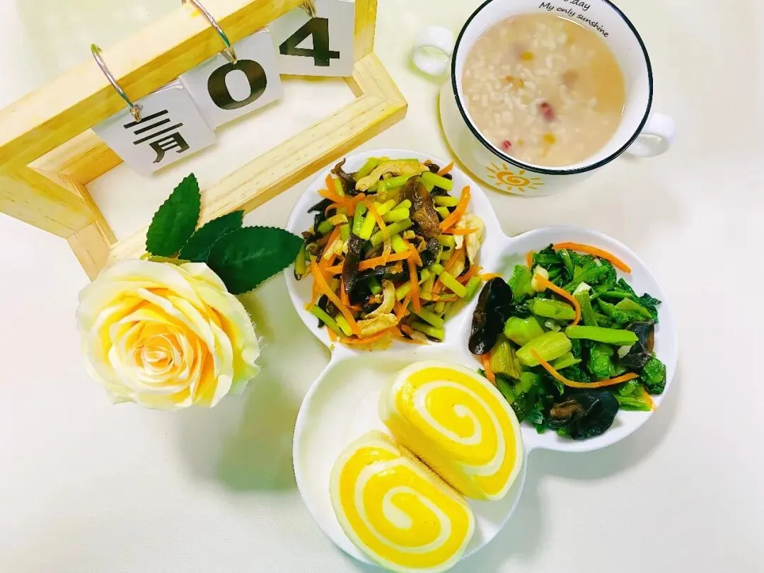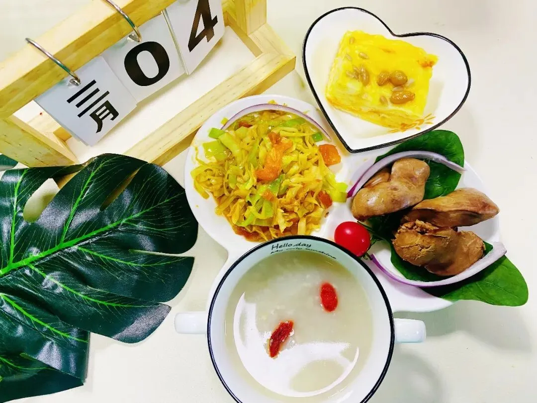 果脯发糕 卤鸡肝 茄汁包菜 牛奶燕麦