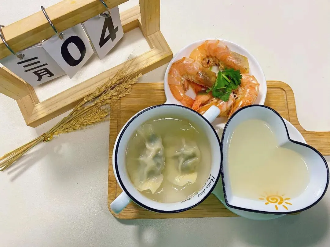 荠菜水饺 清蒸大虾 水饺原汤