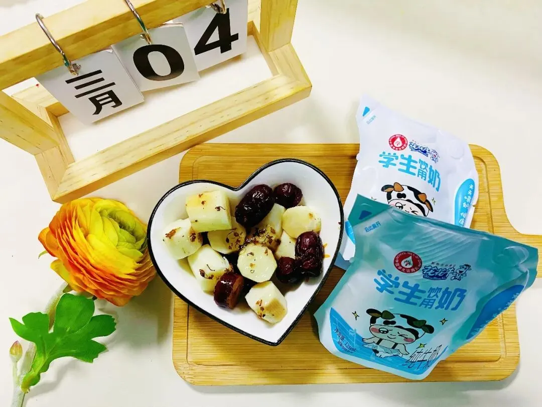蜜汁桂花大枣蒸山药 花花牛学生奶