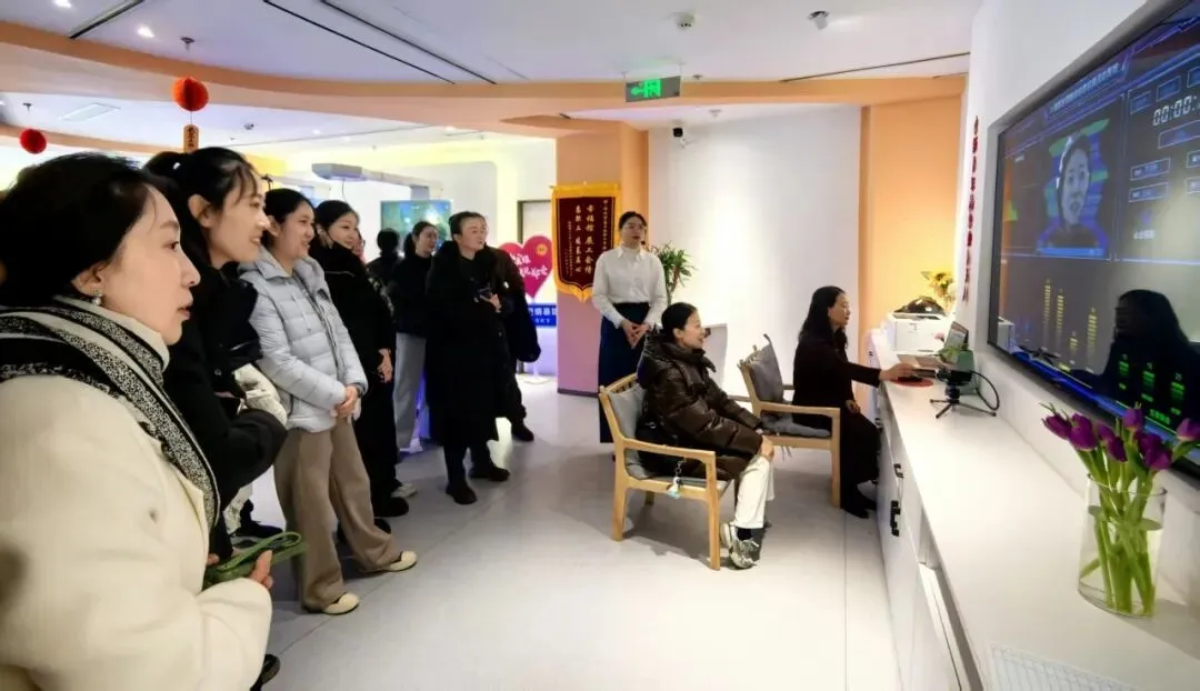 在幸福体验馆工作人员引导下,职工们依次体验了三大特色功能区。体验区内,VR动感单车通过模拟骑行场景,结合实时心率监测与智能训练强度调节,帮助职工在运动中释放压力;AI情绪评估系统运用面部表情识别与语音分析技术,生成个性化心理健康报告,为职工提供情绪管理科学建议。互动区则以趣味游戏为载体,通过心理调适桌游、智能击打呐喊宣泄等设备,让职工在轻松氛围中掌握压力管理技巧。治疗区内,音乐疗愈室通过沉浸式声场技术播放自然白噪音与古典音乐,配合生物反馈仪监测生理指标,帮助职工进入深度放松状态;正念减压室则由市总心理专家库导师带领,通过呼吸训练与冥想练习,系统传授“身体扫描术”“呼吸锚定法”等实用技能,助力职工构建心理韧性。