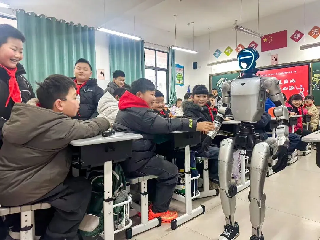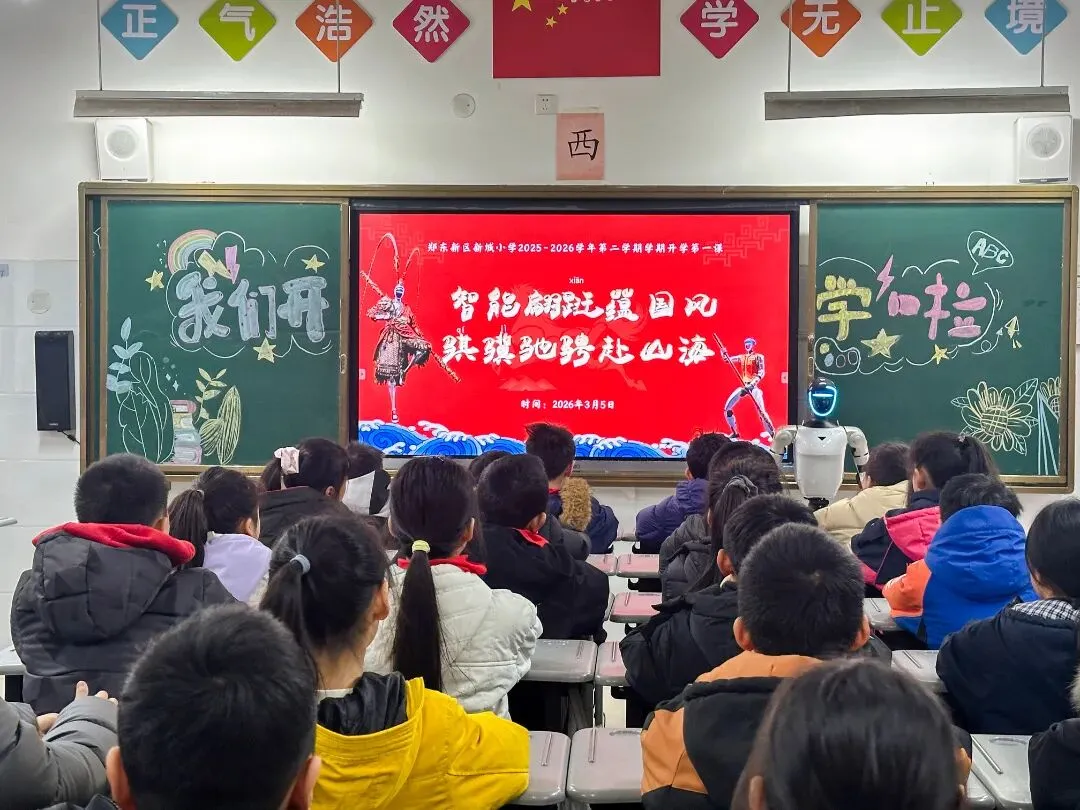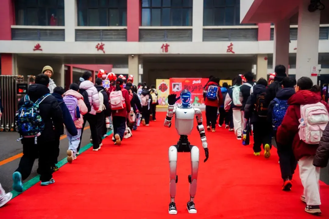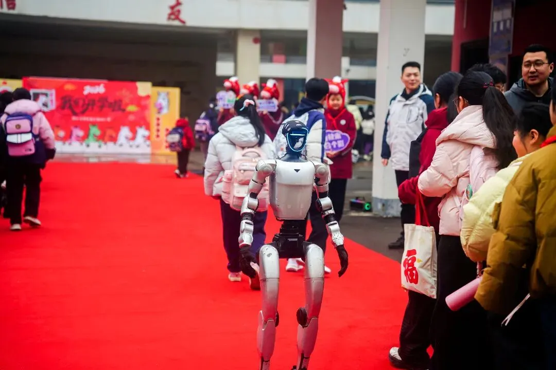 现场,一段春晚《武 BOT》视频率先点燃氛围 —— 机器人腾空翻、耍棍术的高难度动作,让同学们惊叹连连。更令人惊喜的是,主持人话音刚落,春晚同款机器人便闪亮登场!