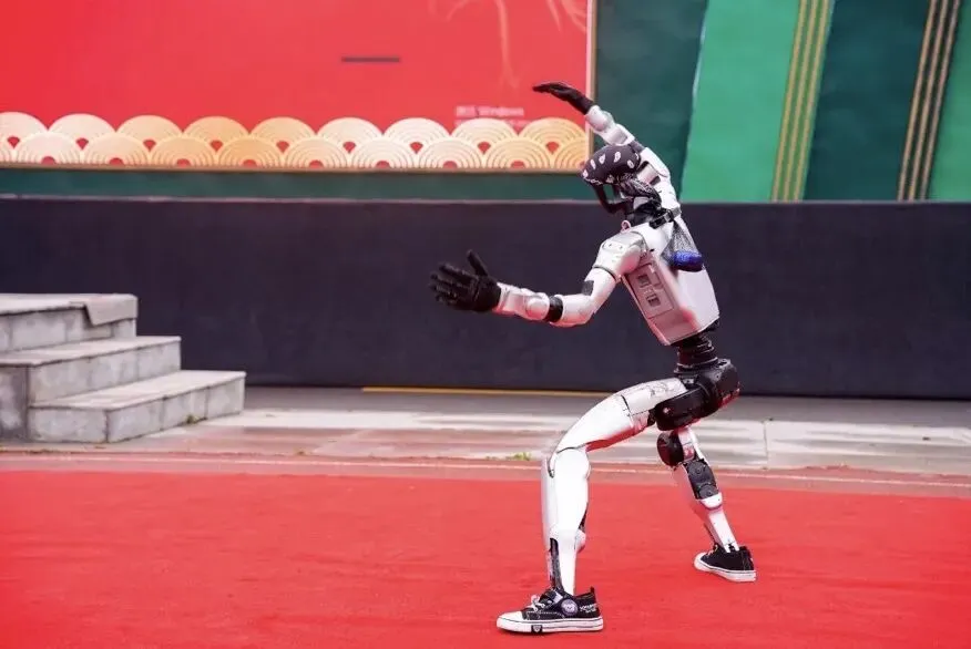 它迈着矫健步伐向师生致意问好,随后即刻切换状态,开启了一场极具科技感的机械舞表演。机器人的机械舞精准把控每一个节拍,关节灵活转动、动作利落干脆。每一个抬手、转身、摆臂都精准卡点,灵动又有力量,极具视觉冲击力,精彩的演绎瞬间点燃全场,欢呼声、掌声此起彼伏,将现场氛围推向高潮。