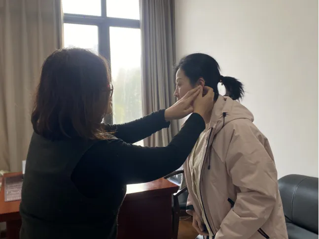 3月5日下午,柳女士应邀来到促进会办公室,由专业听力技术人员董老师为其开展全面的听力评估。董老师根据其听力损失情况,进行了助听器的精细调试,并就使用方法与注意事项进行了详细讲解,确保设备能够发挥最佳助听效果。