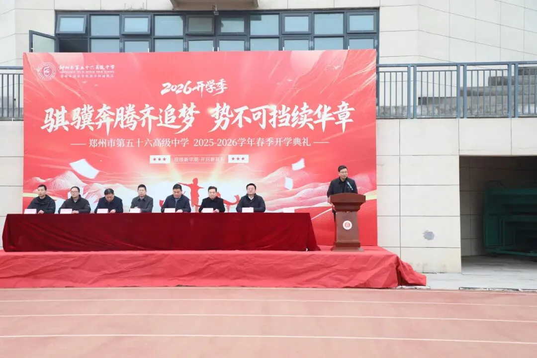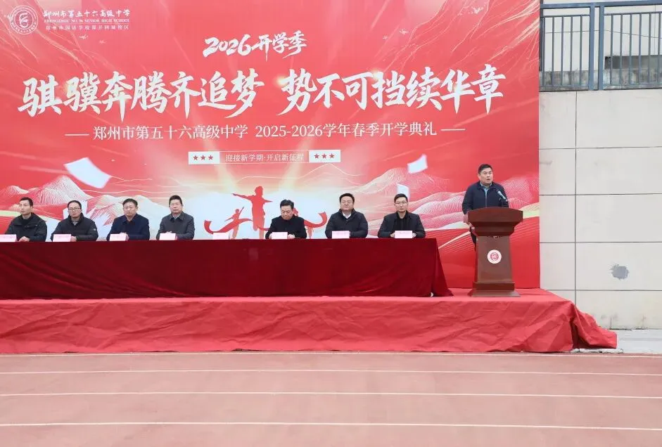 春风得意马蹄疾,最是少年奋斗时。本次春季开学典礼,是一次凝心聚力的动员大会,更是一次催人奋进的誓师大会。它为全校师生明确了新学期的奋斗目标,凝聚了前行的力量,让每一位五十六高人都满怀憧憬与希望,踏上新的征程。郑州市第五十六高级中学全体师生将以本次开学典礼为起点,在丙午马年携手同行、奋勇拼搏,用汗水浇灌希望,用奋斗铸就辉煌,在新学期书写属于五十六高的崭新华章!