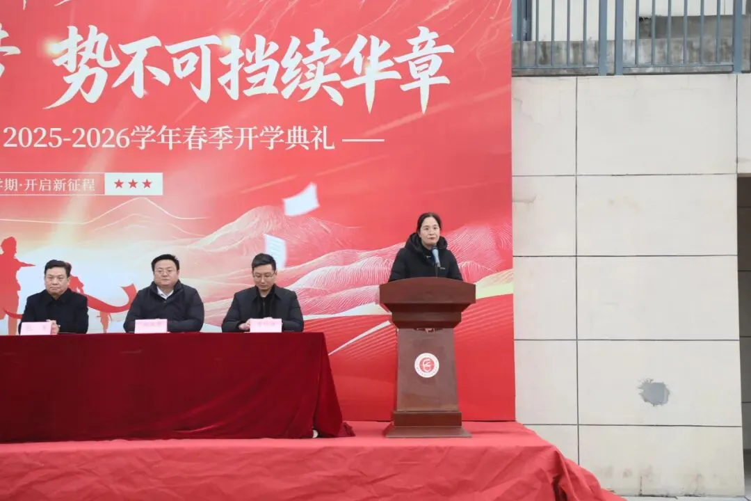赵良校长以《春耕杏坛,马跃新程》为题发表新学期致辞,结合时代发展与教育要求,勉励同学们跳出功利性学习,深耕知识、锤炼品格,培养胸怀天下的格局;同时寄语全体教师,以仁爱之心、专业之能做学生成长路上的 “大先生”。他号召全校师生以龙马精神实干笃行,在丙午马年策马扬鞭,共谱学校发展新篇。