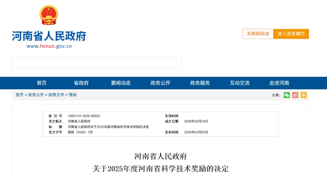 ●上海近日试点推出网约公交服务:车票价仅1元,乘客可通过小程序预约乘车。●江苏、四川等地春假近日落地,清明和五一假期前出行热度猛增,成都、南京等地出发机票同比翻倍增长。●截至目前,全国已有525个“公园式”婚姻登记点、1000多个户外颁证基地,新人们可以任意选择自己喜欢的地方去登记结婚。●广西壮族自治区人民政府办公厅发布关于2026年广西三月三放假的通知:4月18日(周六)、4月19日(周日)放假,4月17日(周五)、4月20日(周一)补休,共休4天。结合清明节以及劳动节的假期,广西人4月份每周只用上4天班。●还没入职就背上近两万贷款,工人日报:警惕“招转培”骗局。不法分子诱导求职者付费进行“入职培训”,之后非法占有培训费。●3月5日,贵阳至贵阳北G4524次列车出现一等座4元二等座8元?12306回应:票价差异系市场化动态调整。●近日,内蒙古一女子时隔半年回家看房,公共走廊被邻居爆改成开放式厨卫,灶台、油烟机甚至还有马桶。当事人:邻居把我家围里面了,怎么维权?●北京一位大爷每年生日购入100克黄金,坚持了20年,上涨后就卖出,已出售1500克,大爷4日淡定回应金价下跌:“这不正常吗,没什么感想。”●近日,河南省人民政府发布一批人事任免通知,涉及省水利厅、省文化和旅游厅、中原工学院、信阳师范大学、河南水利投资集团有限公司等政府职能部门、高校和企业。详情>>●近日,河南省人民政府印发《关于2025年度河南省科学技术奖励的决定》,共评选出获奖项目(人选)309项(人),一批服务国家战略、支撑产业升级、保障粮食安全、彰显青年担当的科技成果脱颖而出。“马立克病病毒致瘤关键调控基因的发现及机制研究”等33项成果被授予河南省自然科学奖,其中一等奖3项、二等奖22项、三等奖8项;“面向智慧种植的农业机器人精准感控关键技术与应用”等9项成果被授予河南省技术发明奖,其中一等奖2项、二等奖5项、三等奖2项;“花生青枯病抗性关键基因发掘与高产优质抗病新品种培育”等265项成果被授予河南省科学技术进步奖,其中一等奖23项、二等奖137项、三等奖105项;古拉姆·扎拉·穆罕默德和亚当塞格德·汉娜·叶希涅格斯2名外籍专家被授予河南省科学技术合作奖。●3月4日,河南许昌一村庄自办歌舞晚会,于东来路过围观还上台互动,演艺公司:他互动了10来分钟,没有唱歌。●3月4日,太康县城市城管局、太康万江新能源供热有限公司发布关于延长供暖的通知。