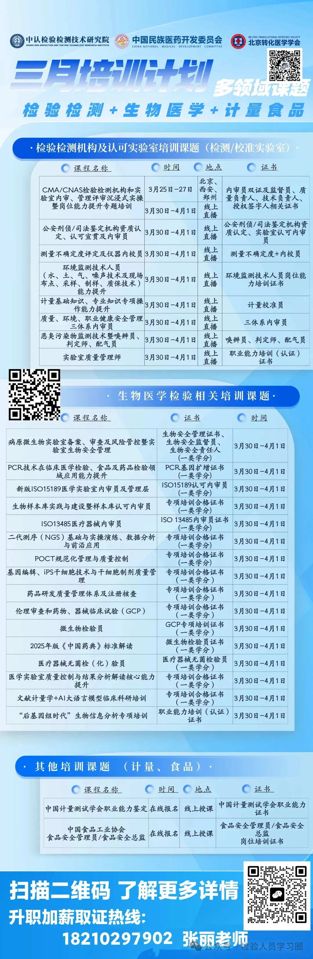 3月线下,北京、郑州、西安CMA/CNAS检验检测机构和实验室内审员、管理评审岗位能力提升专题培训班"的通知