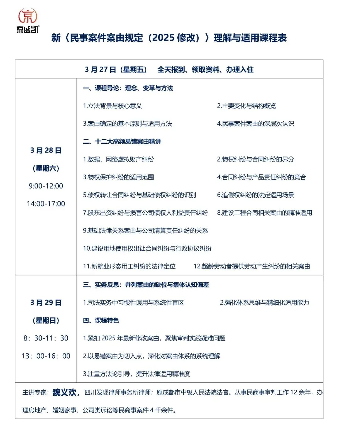 3.28郑州【报到通知】丨魏义欢 新〈民事案件案由规定(2025修改)〉理解与适用高级研修班