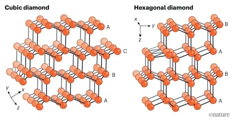 立方金刚石与六方金刚石结构。图片来源:Nature[1]