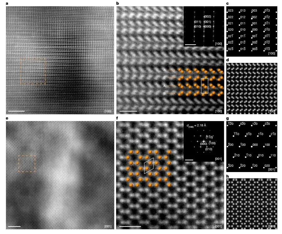 图2. 块体六方金刚石的原子结构。图片来源:Nature